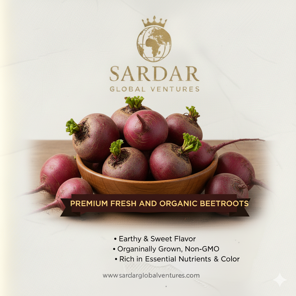 Sardar Global Beetroot is freshly harvested and naturally rich in vitamins, minerals, and dietary fiber. Known for its deep red color and slightly sweet taste, it supports heart health, boosts stamina, and promotes glowing skin.