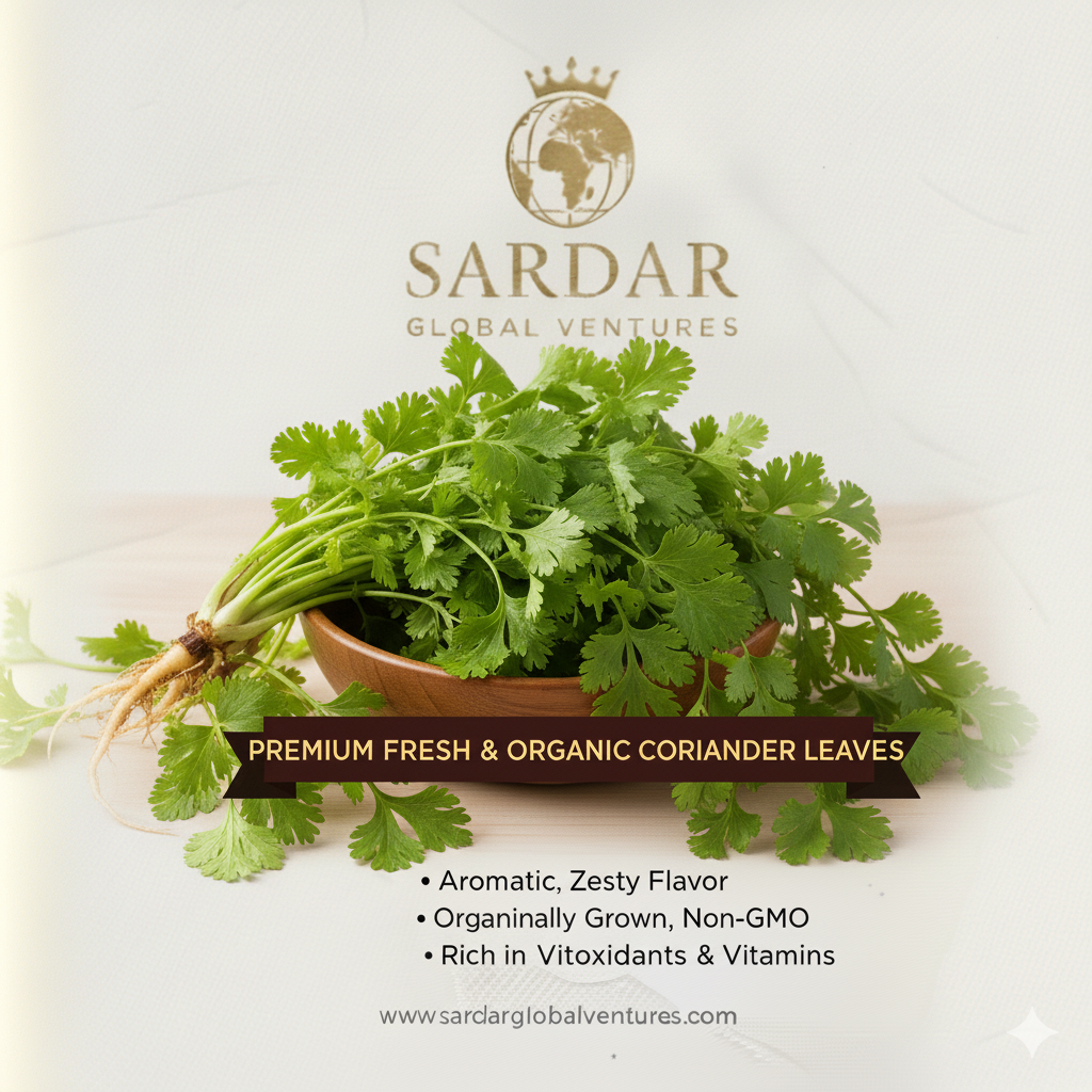 Hygienically cleaned and carefully packed, Sardar Global Coriander Leaves retain their natural color, flavor, and nutrients — making them an essential ingredient in every kitchen.