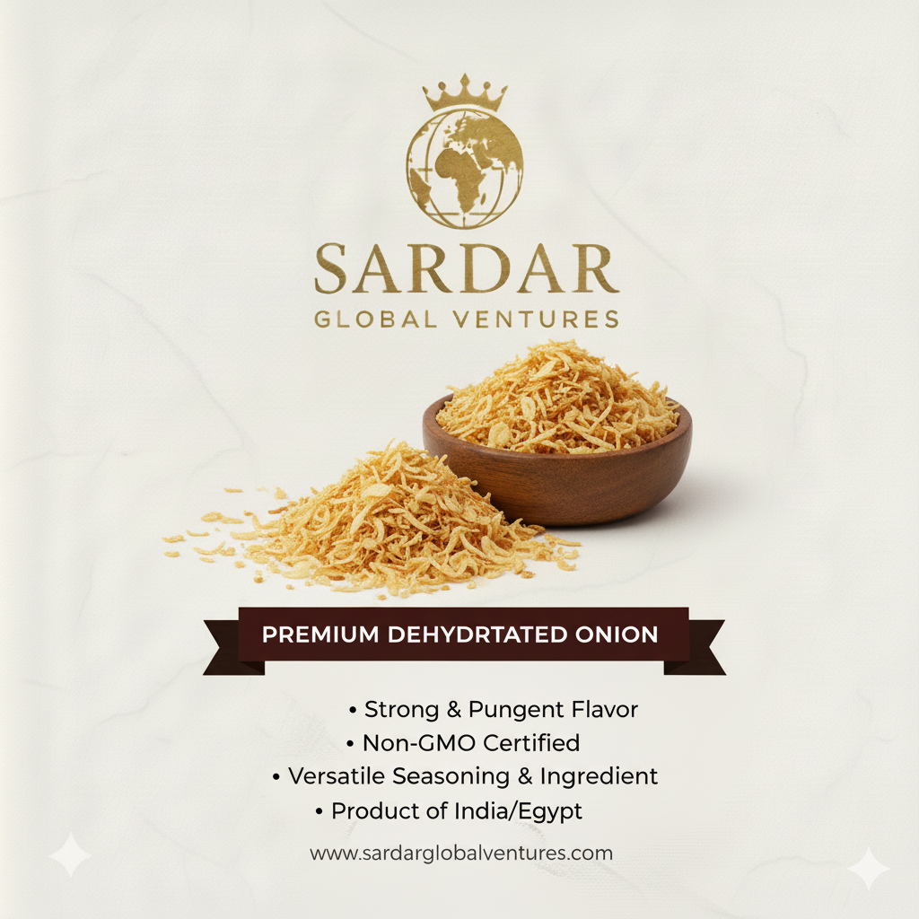 Sardar Global Dehydrated Onion is carefully processed to preserve the natural taste, aroma, and nutritional value of fresh onions. Rich in antioxidants, vitamins, and minerals, dehydrated onion is ideal for cooking, seasoning, spice blends, soups, and a wide variety of culinary applications.