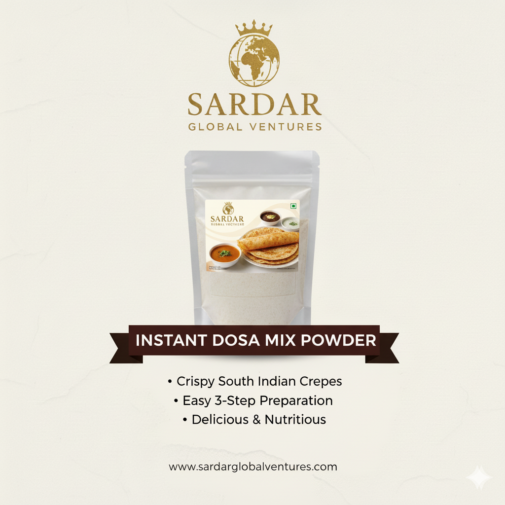Hygienically processed and packed, Sardar Global Instant Mix – Dosa retains natural flavor and ensures consistent quality, making it ideal for home cooking, family meals, or parties.